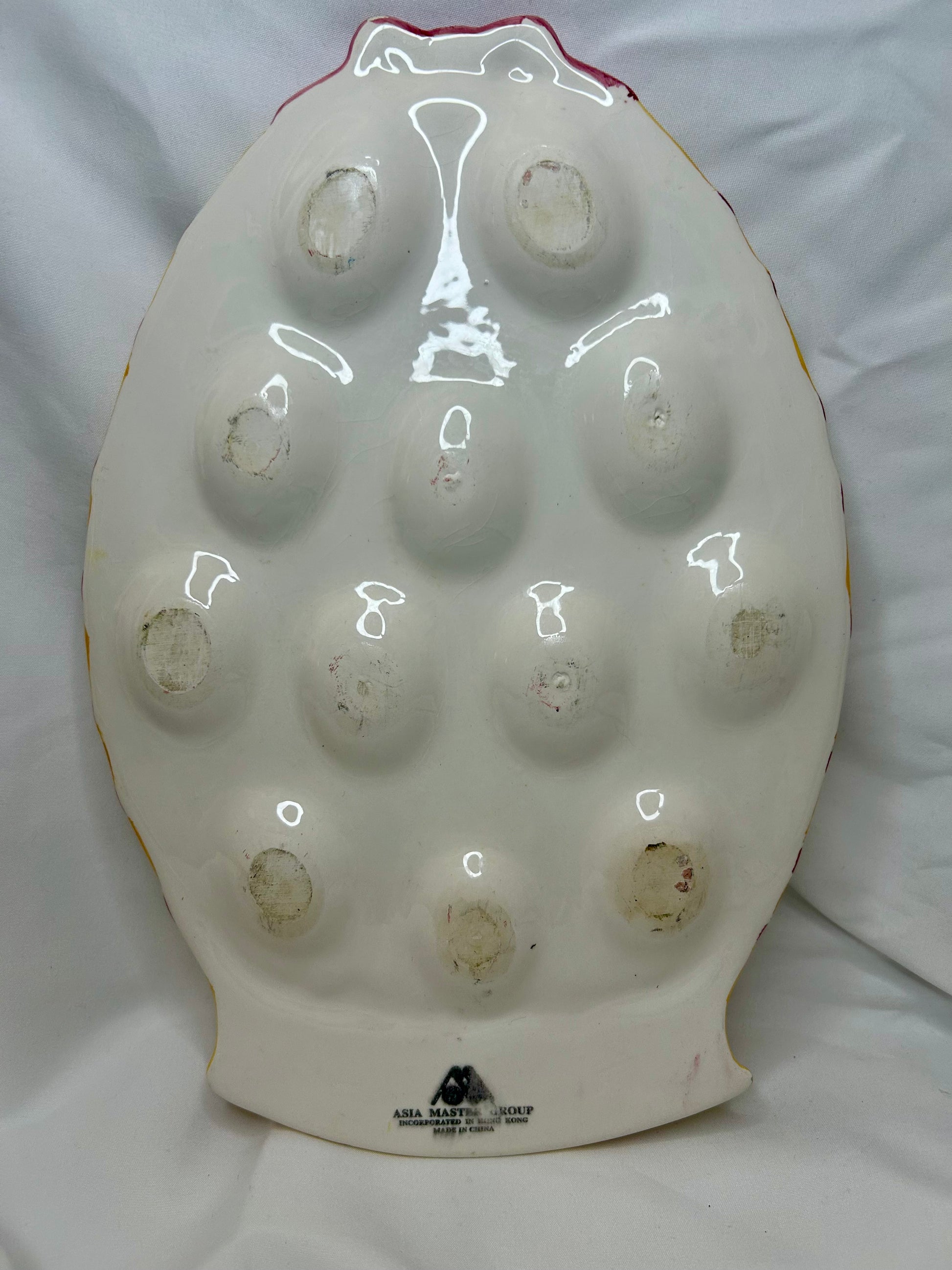 Bring a touch of springtime whimsy to your Easter table with this charming egg-shaped deviled egg plate! Designed to look like an Easter basket complete with a decorative bow, this platter is dressed in pretty spring colors that make it as lovely to display as it is to use.